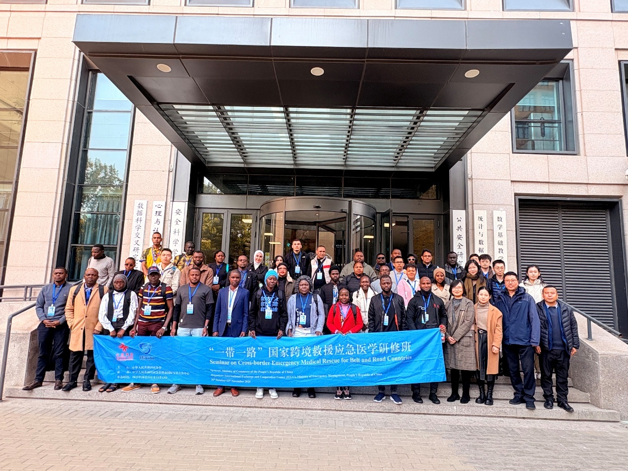 2025年11月4日上午,由应急管理部国际交流与合作中心、应急总医院联合组织的“一带一路”国家跨境救援应急医学培训班代表团一行40人访问清华大学安全科学学院。此次代表团成员来自斐济、约旦等十余个国家,旨在围绕应急安全领域的前沿技术创新与国际协作实践进行深入交流。